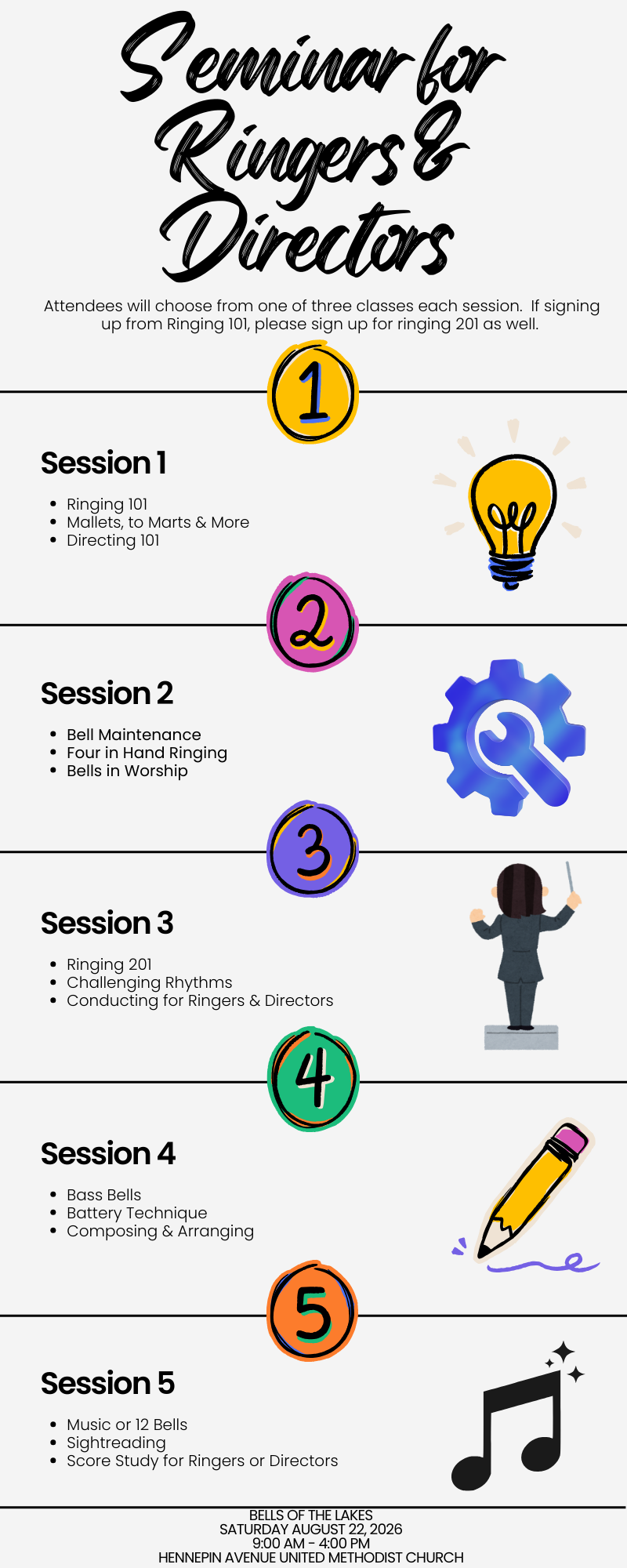 Registration is now open for our Seminar for Ringers & Directors! Register here by June 1st to get the early bird rate of $40. Reach out to seminar@bellsofthelakes.org with any questions.